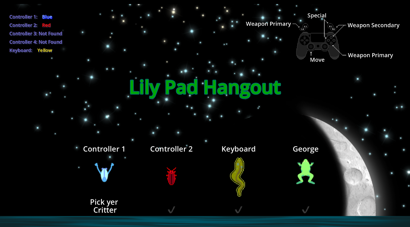 One player can use the keyboard, W,A,S,D or the Arrow Keys for movement, G,Y,J, Space Bar for Dash/Lure, use weapons. P: Puts the keyboard to sleeP.